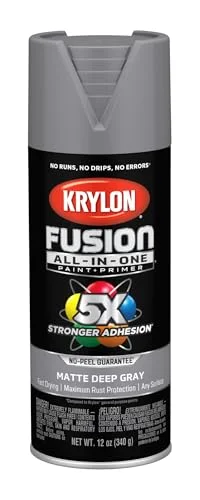 Krylon Fusion All-In-One, Matte, Deep Gray offers unmatched adhesion and durability for PVC surfaces. This all-purpose spray paint features a quick-drying formula, suitable for indoor and outdoor applications. Its matte finish provides a modern look, while the rust protection ensures longevity.