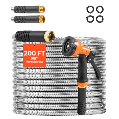 VEVOR Metal Garden Hose 200 ft, Heavy Duty Stainless Steel Water Hose |