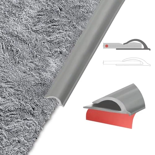 The Flexible Carpet Edge Trim is a self-adhesive, waterproof safety edging designed for thick rugs and mats. With a width of 1.65 inches and a length of 10 feet, it fits carpets up to 15mm thick. Its durable PVC material is stain-resistant and remains flexible in cold.