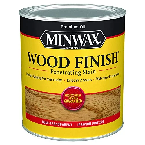 Minwax 70004444 Wood Finish in Ipswich Pine is an oil-based wood stain that delivers rich, even color. Its deep penetrating formula enhances the natural beauty of wood grain in one coat. Quick drying in two hours, it allows for efficient project completion and easy application with cloth or brush.