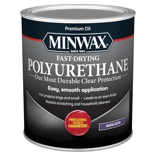 Minwax Fast Drying Polyurethane Protective Wood Finish in Warm Satin is ideal for protecting wood surfaces. This oil-based top coat stands out for its durability against scratches and spills. It dries quickly, allowing for multiple coats within hours, and offers a warm satin sheen for a cozy aesthetic.