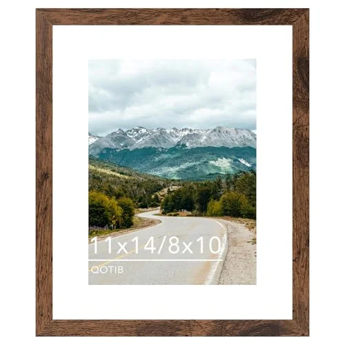 QOTIB 11×14 Picture Frame with 8×10 Mat Deep Brown, Display 8×10 with |